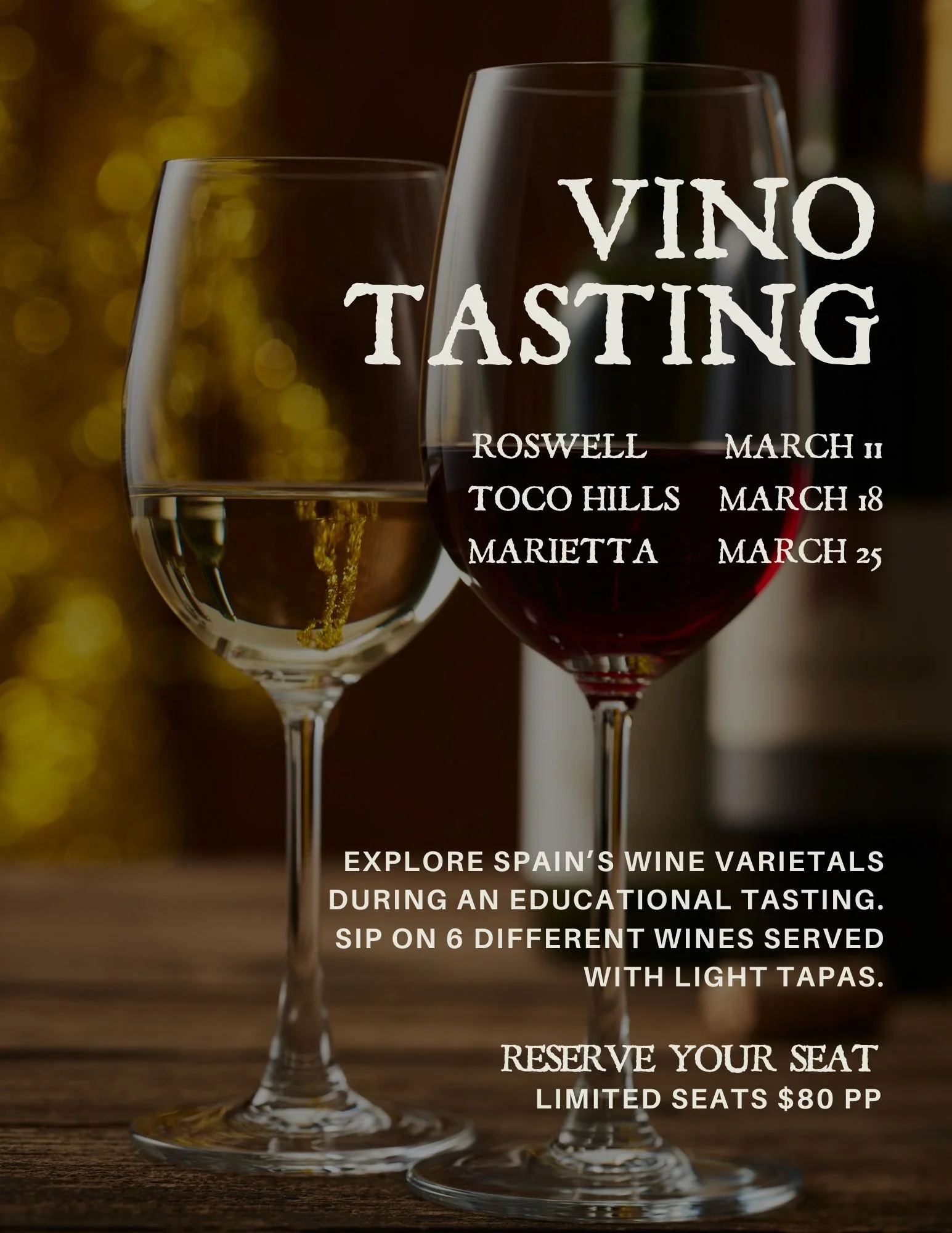 Explore Spain’s wine varietals during an educational tasting. Sip on 6 different wines served with light tapas: